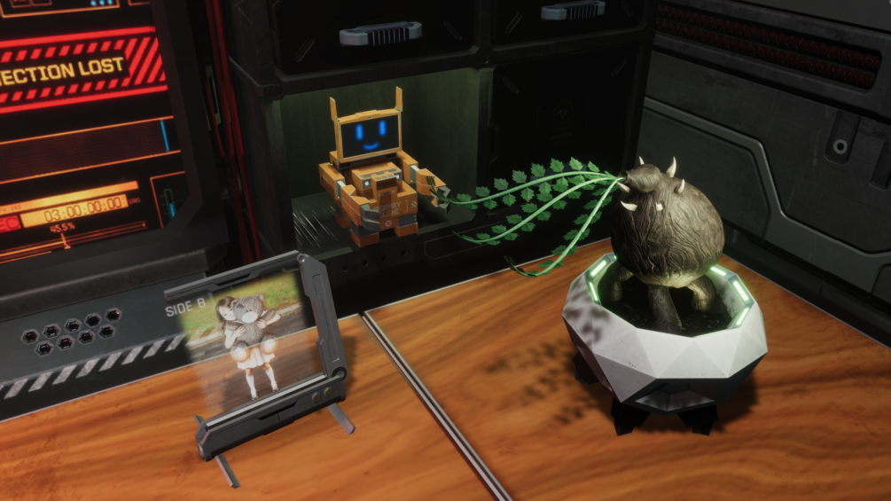 Sci-Fi Engineer's Room Story : Once there was a scientist-engineer who dearly missed his family. On his desk, he kept a hologram of his daughter, and on his bed sat a cyborg bear, a reminder of her. He also had a robot named RobbyCube on his shelf, his daughter's favorite cartoon character. Throughout his space, there were small signs that reminded him of his family, keeping their memory close.