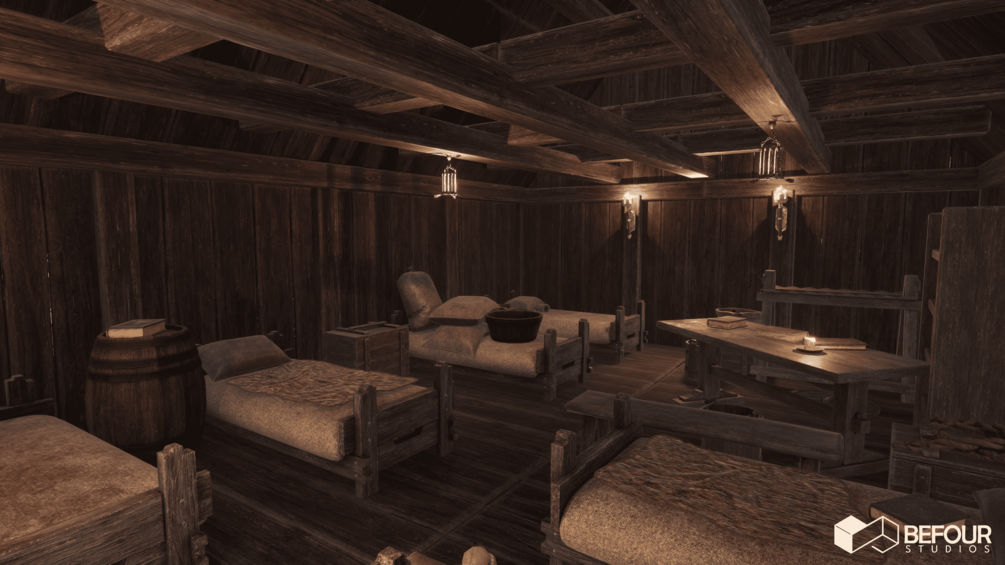 - Props: Furniture, GrindStone, Sword, Spear, Axe, Barrels, Torches, Candles, Bed, and lot more.