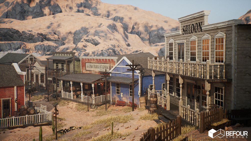 Explore the Western Desert Town Environment with 231 unique meshes and Construction Tool that helps you create your structures easily.